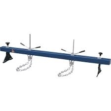 In the industry we use an over the engine brace, this sits inner guard edge and had an adjustable hook that you can attach a chain to sling the engine from above. See picture for an example. You may be able to hire one from a larger DIY hire company.