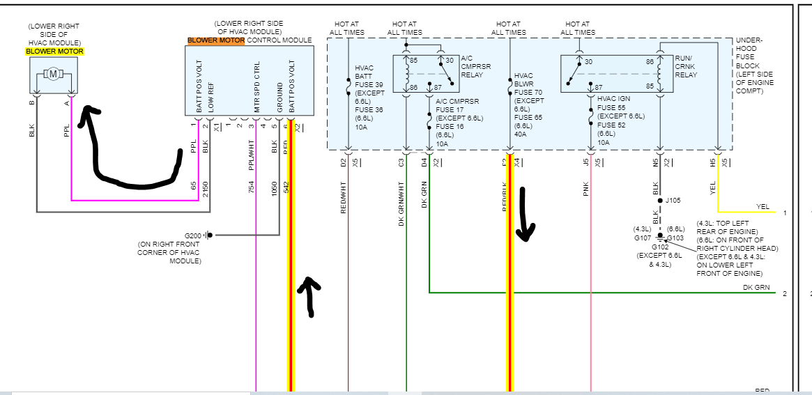 Pic 1 below is for the manual climate control. I need you to pull fuse 70 to confirm the fan stays off. If it does, then we need to check connectors and wiring for shorts to power between the fuse and the motor. Note, there is a blower motor control module. It too could have an internal short.