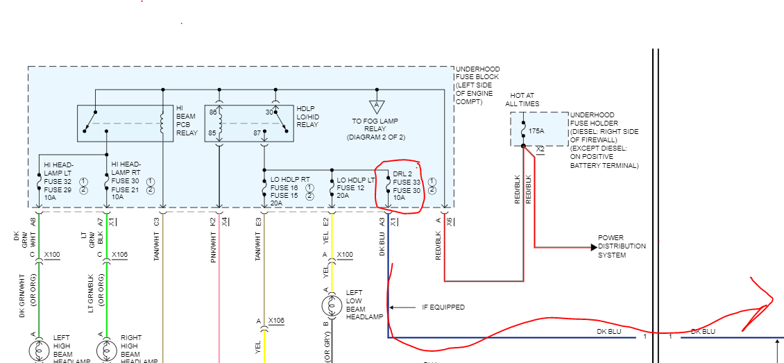 As far as the DRL, the last two pics are related to that issue. Remove the DRL 2 fuse in the under-hood fuse box to see if the DRL turns off. It will be fuse 33. If it does, go to the DRL relay in the under-hood fuse box and switch it with a different one with the same part number to see if it fixes the light issue.