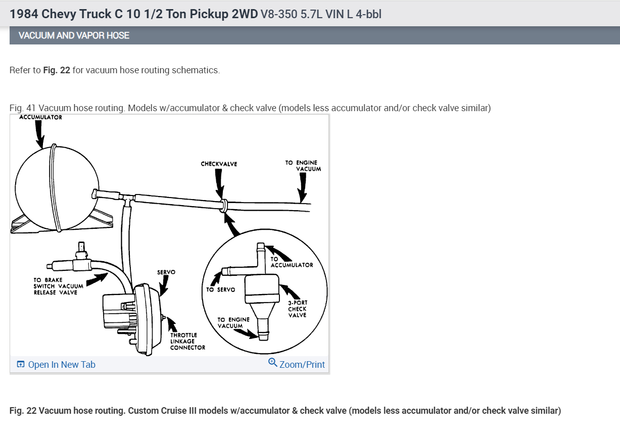 I just reinstalled the cruise control servo into the pickup (had to repair the rubber diaphragm). Everything is plugged in, but the cruise isn't working. I have manifold vacuum connected to the smaller port on the unit, and what I think is the break-controlled vacuum connected to the larger port. Wires are connected as is the throttle linkage. Can you help me diagnose the issue? I think it's electrical, possibly the turn-signal switch, but that's expensive so I don't want to go there first. Is there a fuse for it, or some other way/item to diagnose?