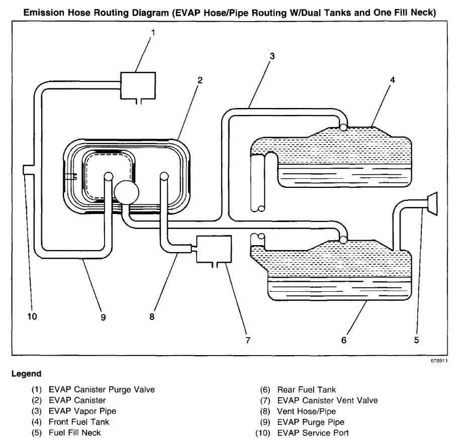 The second diagram shows the Evap system, it will still have the same components if you don't have dual gas tanks.