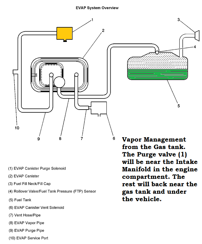 The 1st diagram is the vacuum hoses in the engine compartment, the intake manifold I colored in orange just to identify it, the 2nd diagram is the Evap vapor management system which pulls fuel vapor from the gas tank and burns it in the engine to keep emissions down.