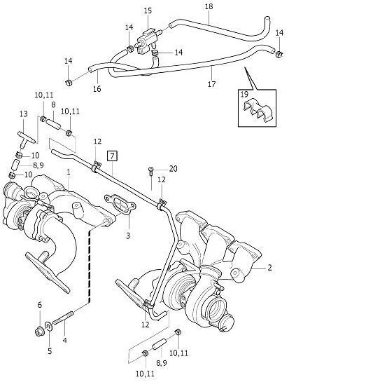 Parts 8, 9, 16, 17, and 18 are all vacuum hoses. The rest are hard lines.