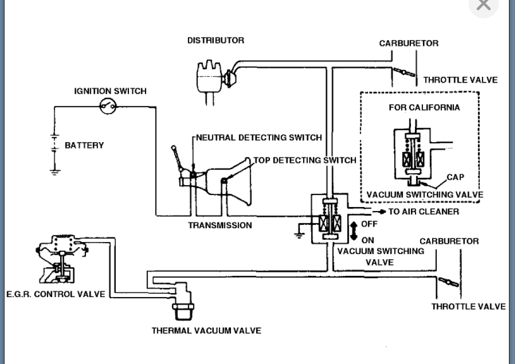 If you piece this together, it will give some detail as the thermal vacuum valve has a vacuum line from the carb and it leaves and goes to the EGR along with the transmission diagrams it will give most.