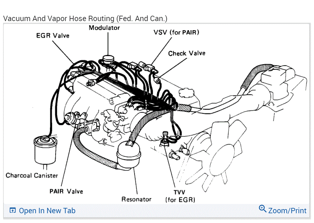 I attached the vacuum schematics I have for the 1993. I don't see how a vacuum leak is causing flooding. Are you sure the float is set properly in the carburetor? Is the choke fully opening? There is a vacuum fuel shut off that is actuated when decelerating, but that shouldn't cause a problem at idle. Also, that is a standard on the 1987. LOL