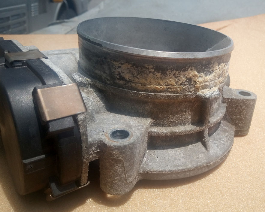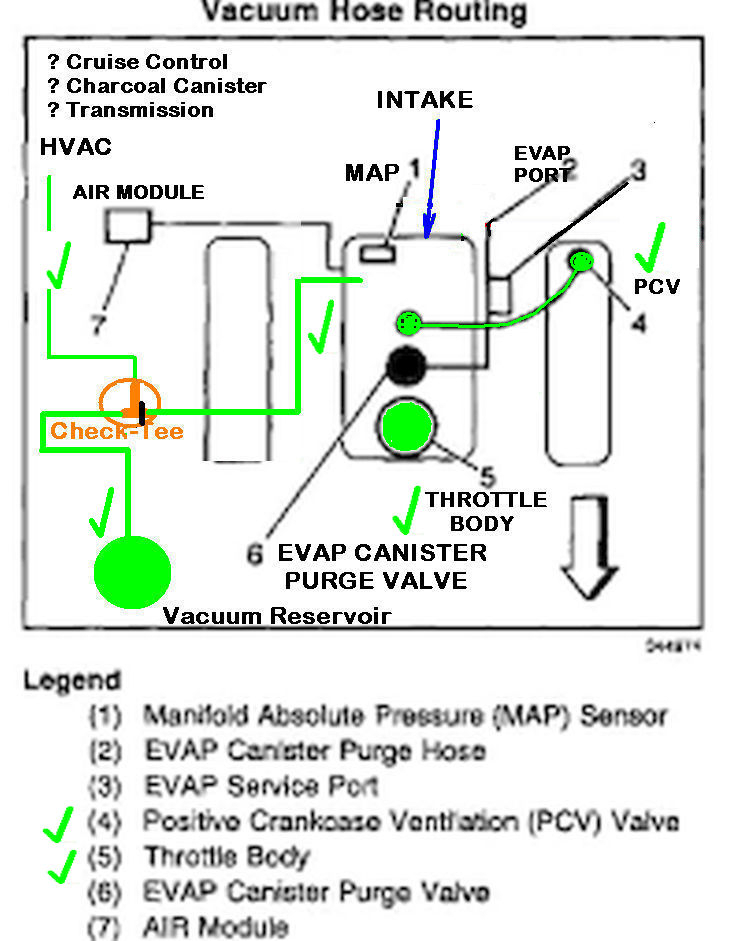 Yesterday, I threw up my hands, and visited a fellow that owns a shop (and has a smoke machine). Coincidently he owns a Chevy Express Van. Within 30 seconds after we started it up - and he put his thumb over the port - the whine stopped - Case Closed! Didn't even need the smoke machine. Just a set of fresh eyes to view the situation. The photo is "The Culprit.