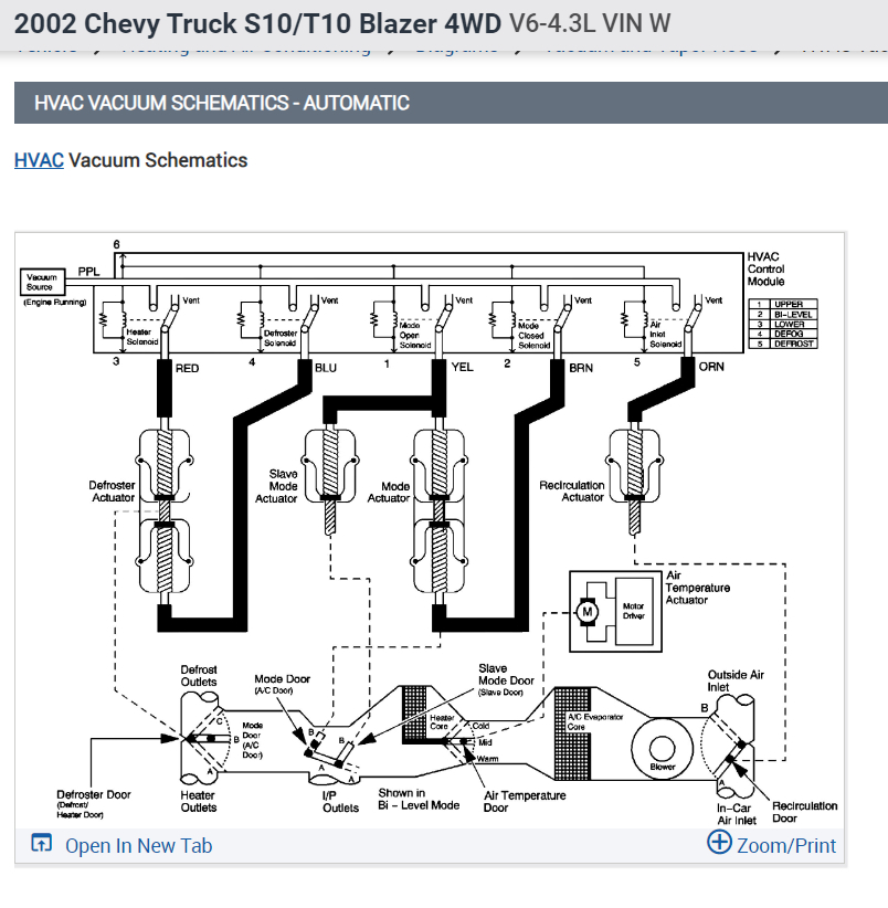 Since I haven't had heat on the floor, I found out the vacuum lines have transmission fluid in them. I am going to replace the 4-wheel drive indicator switch on the side of the transmission and the 4wd front vacuum actuator which is not working. The question is, should I blow air in all the lines with compressed air and then replace with new silicone lines? When I do this, will the compressed air blow any lines inside the dash that will make more of a headache for me to uncover and cause more of a problem? My main concern is getting the heat to the floor and not the vents and getting my vehicle working again before the next snow fall. It does go in gear but won't engage. I just need your thoughts on what would be the better way and easiest way to go about these issues. Thanks for any info on this and God bless on the work you do.