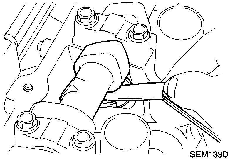 - Using a feeler gauge, measure clearance between valve lifter and camshaft.