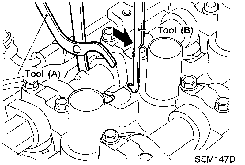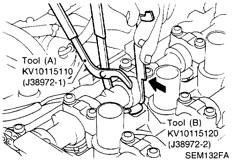 - Be careful not to damage cam surface with Tool (B).