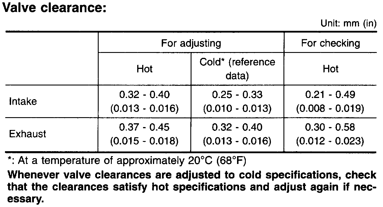Check valve clearance while engine is warm and not running.