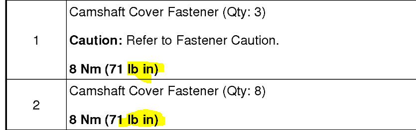 Note this is inch pounds and not foot pounds. Don't overtighten the cover. It can break.