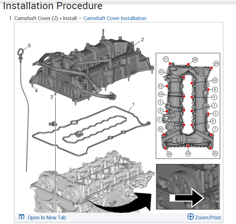 Sure, here are the instructions and the torque spec and sequence on how to tighten the valve cover back down. Check out the images (below). Let us know if you need anything else.