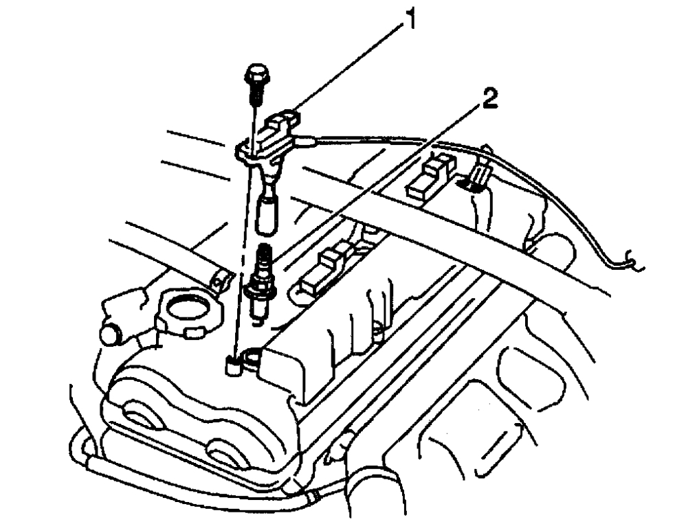 3. Apply GM P/N 12346240 or equivalent to the cylinder head at the points indicated (1).