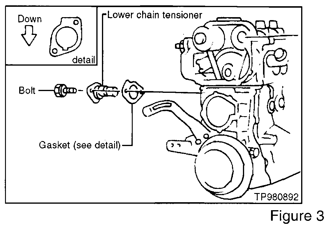 10. Install the lower chain tensioner (See figure 3).