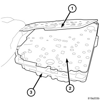 Remove the valve body inner gasket and plate (1) from the valve body.
