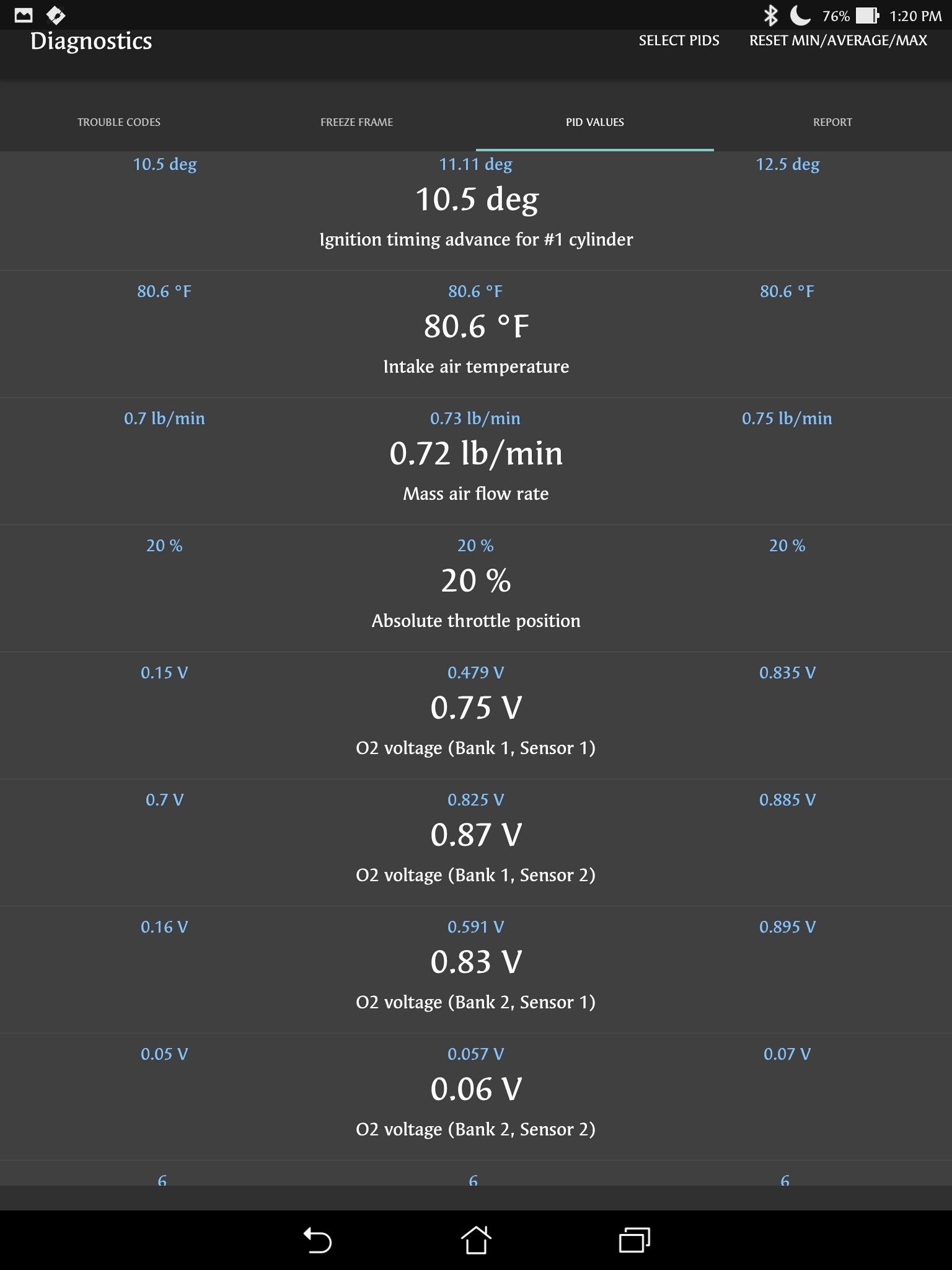 This vehicle does not raise or hesitate before it raise, I have diagnosed it after certain distance drive but it is not record any fault code. I have used live data to view of a particular sensor is out operating threshold but could not see except Absolute Throttle Position that reads:20%, (I attached the picture below). At this point I am confused what could be problem, any suggestions would be appreciated.