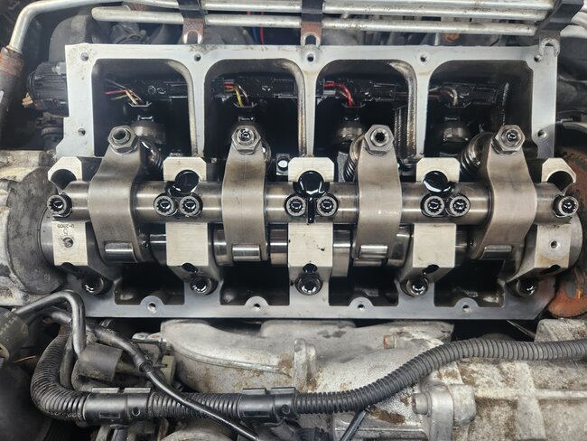 Upon rapid acceleration the vehicle blows black smoke until the throttle is let off. Initially the RPMs jump about 1000 so I'm assuming the turbo is working. I checked the vacuum at the pump, and it was about 30 inHg and at the turbo actuator where it was 24 inHg. I had an experienced VW mechanic listen to it and he thought it sounded like a misfire. Possibly a bad injector. I don't have a VAG-COM to aid in diagnosis. I removed the valve cover to inspect the cam and lifters and have included pictures of their condition. I was unable to remove the timing belt cover so I could rotate the cam to fully inspect the lobes and lifters but there does appear to be some wear and ridging on at least one lobe. I will inspect them more fully when I get the cover off. Then I can also adjust the clearance on the injectors. How do I know if each injector is working? It's not like I can check for a pulse since they are inside the valve cover. I'm new to this type of engine and any advice would be appreciated. The car is drivable, it just doesn't have the power it should.
