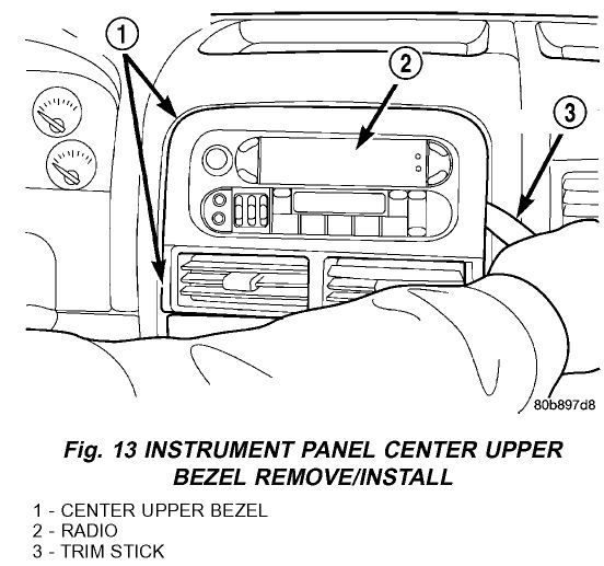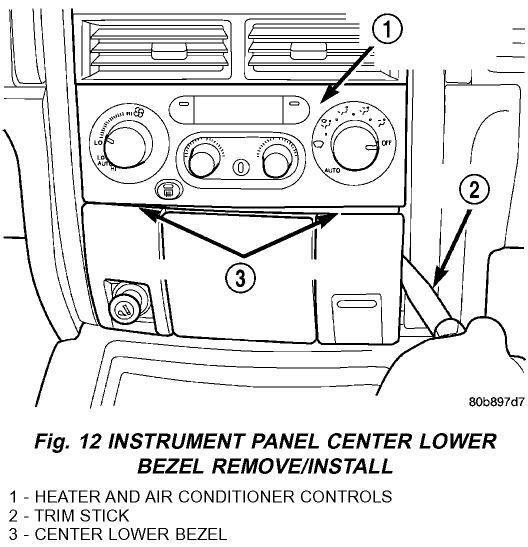 3. Remove the two bolts that secure the center instrument panel support bracket to the instrument panel.