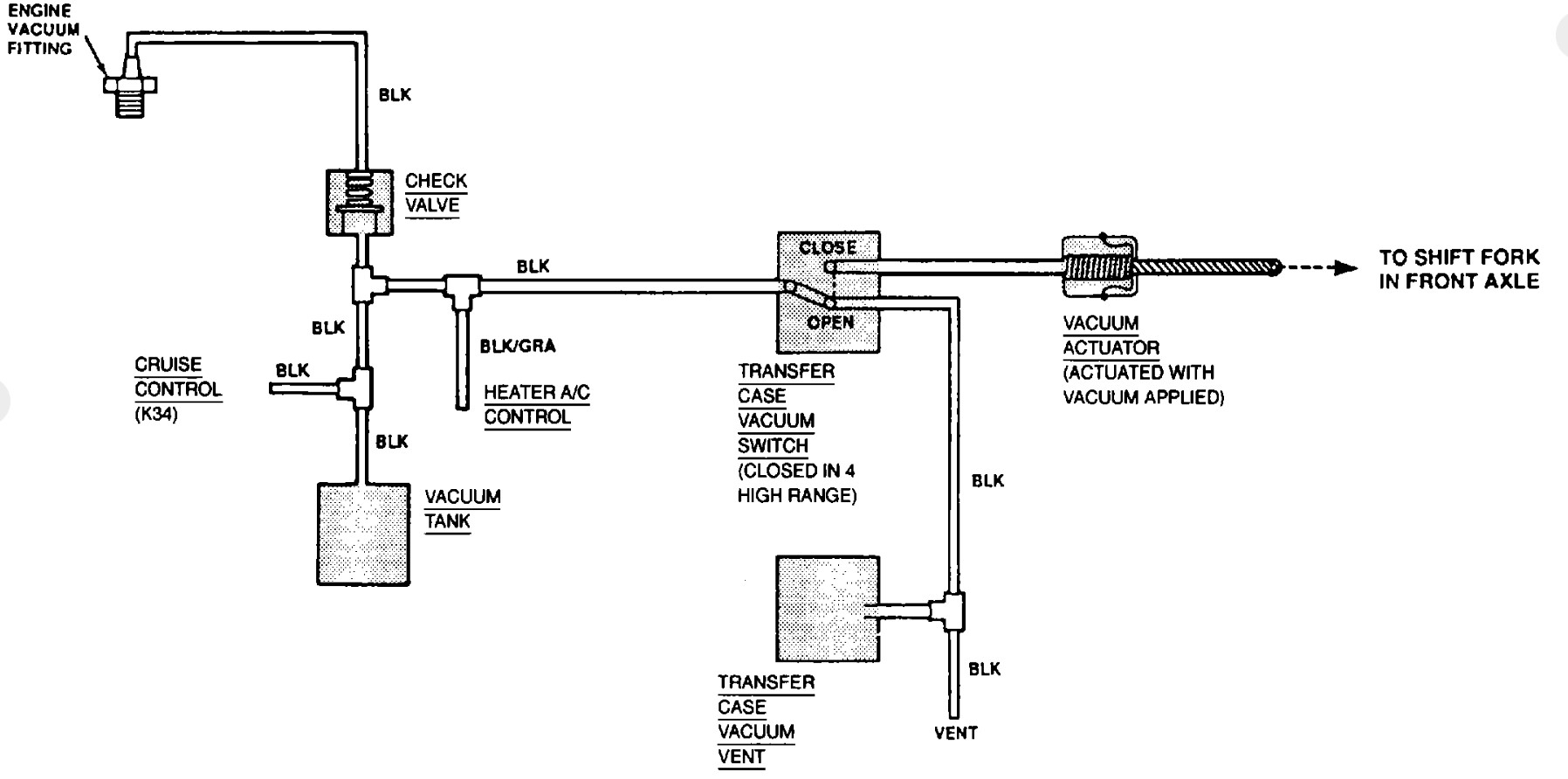 Being a Blazer you have a few things to check. The vacuum line into the canister is one but any vacuum leaks will cause problems, one of the worst is the hardest to get to, that is the line that goes under the battery to the front axle actuator. The fastest way to tell if it is inside or outside is to use a hand vacuum pump and connect it to the line that goes into the vacuum canister, Then apply vacuum, try the controls, does it now switch? If yes it's under the hood. There are a few lines that can be the issue, one to check if you worked on the 4X4 is the triple line that goes onto the transfer case that sends vacuum to the front actuator. One is vacuum, one is the line to the front axle and the other is a vent. If it was plugged on in the wrong location it could cause both the sluggish actuation and the interior problems. FYI, there is an aftermarket kit you can install that replaces the vacuum actuator under the battery with a motor. Makes it switch much faster. Attached are the relevant vac diagrams.