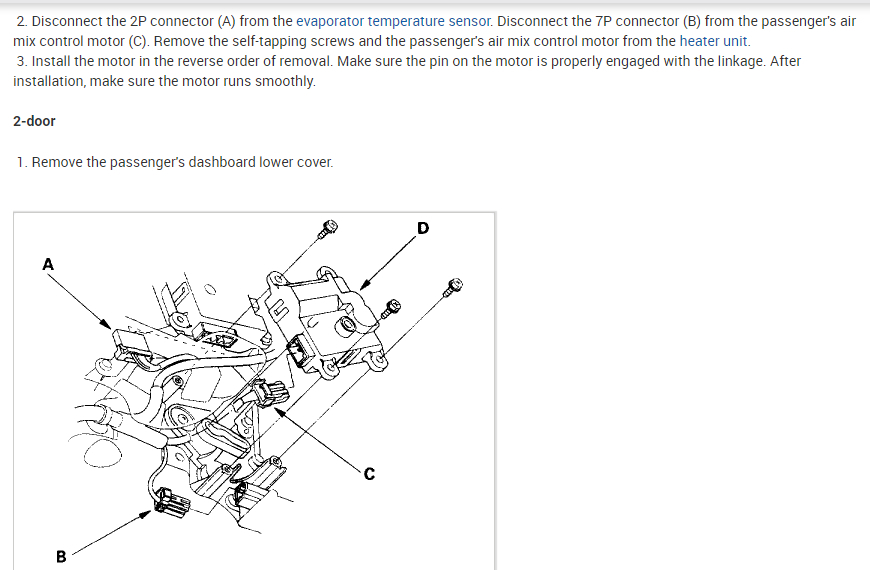 I have the car listed above EX model. The air flow from the passenger sides vents are not blowing much. There is some air but not the normal amount there used to be. This is happening regardless if the A/C or heat is on, the driver side vents blow full blast but the passenger side vents don't blow very much. I've already cleaned the cabin air filter. I've also tested the air flow without the cabin air filter as well. The blower fan on the passenger side is working normally so I know it's not a fan issue.