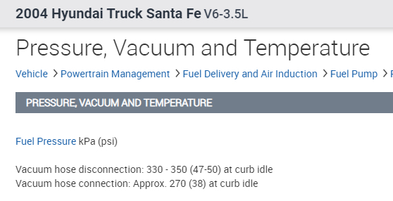 I'm not sure which engine you have in the vehicle, so I don't want to provide the wrong manufacturer's fuel pressure specifications. Let me know the engine size.