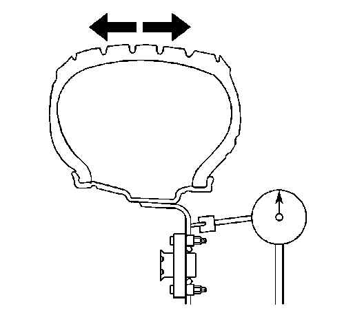 6. If the measurement exceeds 0.127 mm (0.005 inch), replace the wheel bearing/hub.