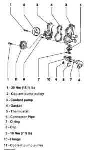 Install coolant pump pulley, crankshaft vibration damper/pulley and upper toothed belt guard.