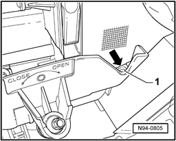 Fig. 267: Turning Locking Bolt In Direction Of Arrow Open (Sticker)
