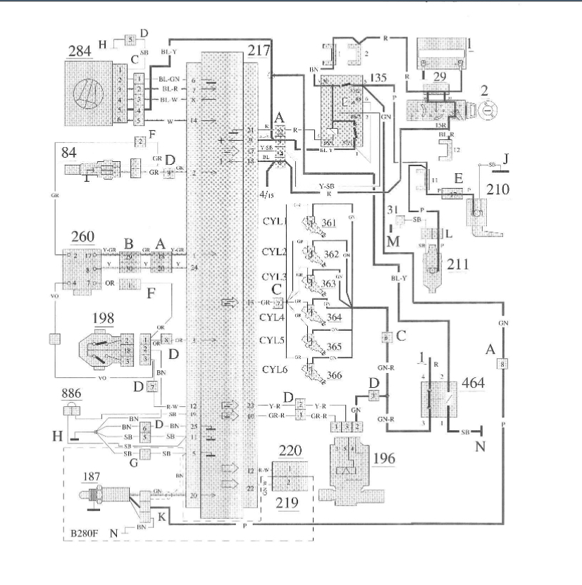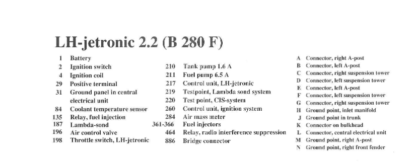 3. 0.7 ohms from any one of the 4 injector connectors to pin 13 at 217 Control unit