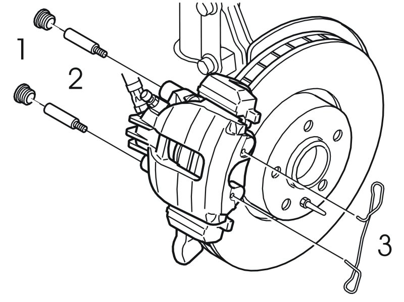 Clean the sliding pins using a steel brush.