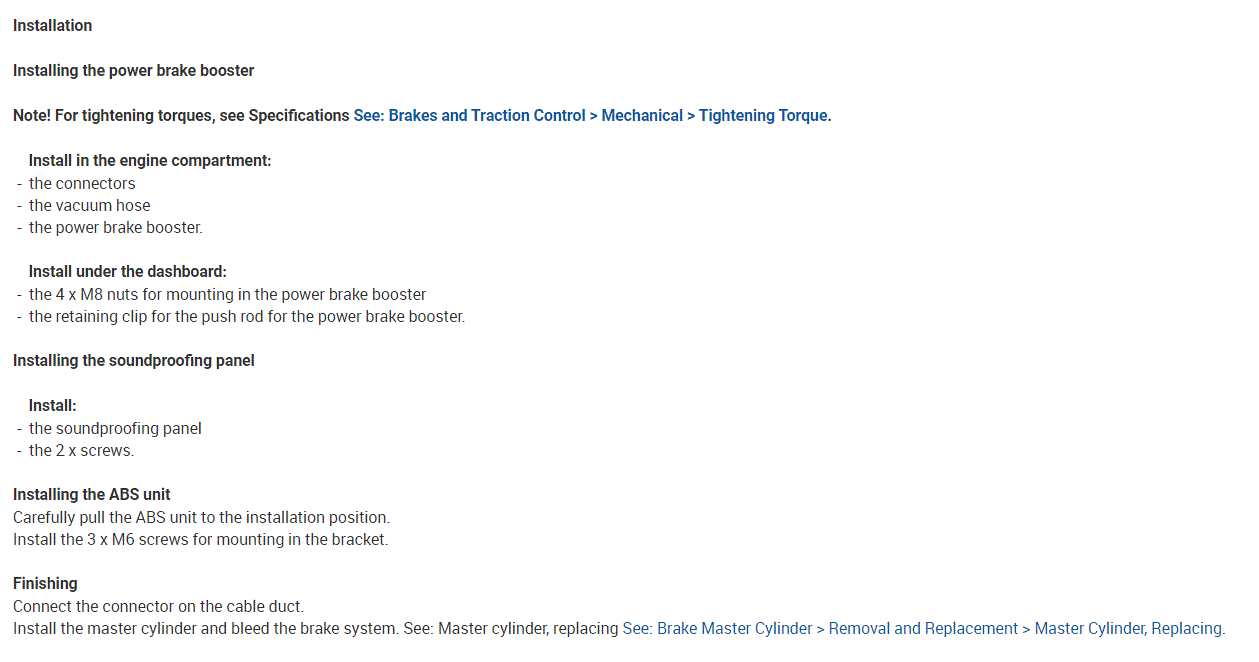 If you look at the attached pics below, they include the directions and pictures specific to your vehicle for removal and replacement. Follow them to replace the brake booster.