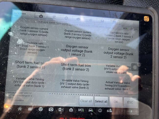 Bought this car knowing it has few issues. But drives great and engine is smooth when I started it and drove it to the gas station and back, soon as I entered my driveway and parked the RPM started jumping up and down, then smoothes out, then does it again. Read the code and found these, while I was trying to read more stuff the engine starting to sound weird, similar to what it would sound if one has bad gas, then smoothes out, then does it again. Then 2 minutes later I saw smoke, so I turned it off. When I bought it the coolant reservoir was low so I added some but can't see any water leaks. I'd there something underneath the top plenum that is common to leak? Not sure if the smoke is coolant related or related to the VVT code, or just 2 different issues. I attached pictures and videos. One of the pictures show the options I have for active testing that I could do, I did a couple but not sure what I should be seeing in numbers. When I first got it it had several codes unrelated to each other so I deleted all, changed the fob battery and waited and some codes to come back and only the p0174 and p0171 came back which I asked on another question. But now these are the ones am seeing and the check engine light is not on.