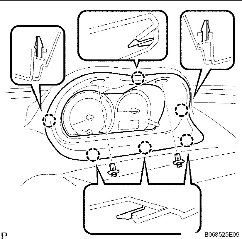 To get to it you remove the trim panel around it using a clip tool. Disconnect the battery ground at this point and wait 2 minutes, that disables the air bag system as the cluster controls part of that as well. Then remove the 3 screws that secure it in place and you can remove the cluster and unplug it. To install it you plug it in, screw in the 3 screws, then attach the battery ground and snap the trim back into place. Then you need to initialize the systems that were shut off when the battery was disconnected. Usually this is the windows and power roof if it has them. If you replaced the cluster you can use the scan tool to reset the mileage on the new cluster if it doesn't initialize itself.