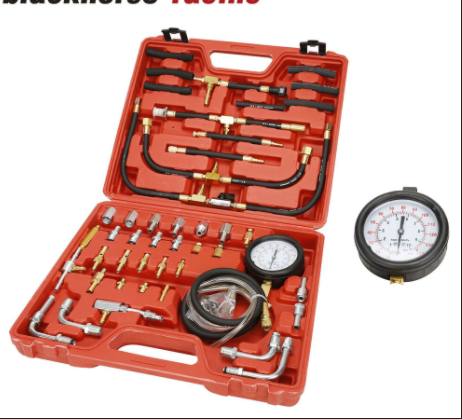 Most all test kits come with these adapters so clearly you just need one that fits the inlet line to the rail.