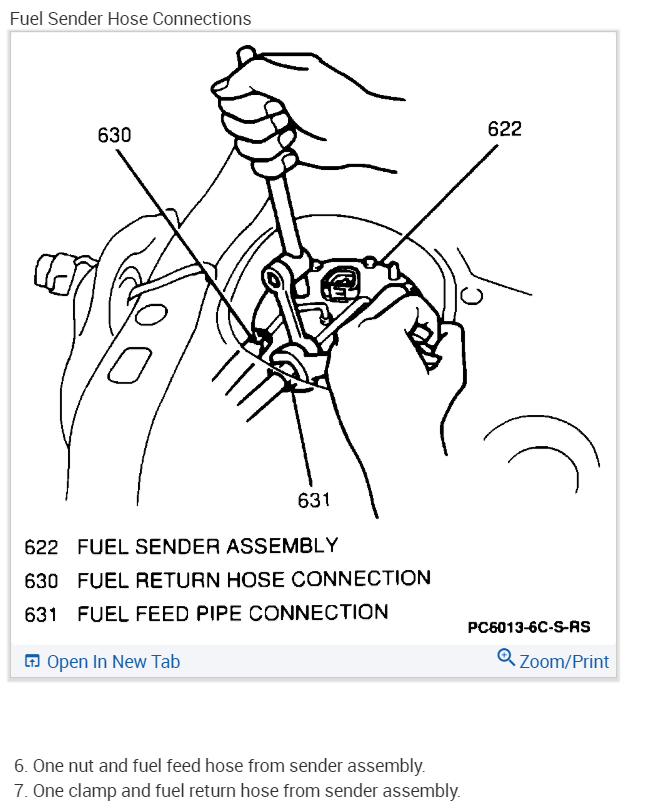 3. Fuel return hose to sender assembly; secure with one clamp.