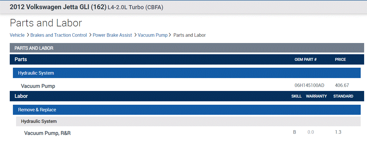 I attached two pictures below. The first one indicates the air pump cost (original equipment) and the number of hours to replace it. The hours are multiplied by the shop's hourly rate.