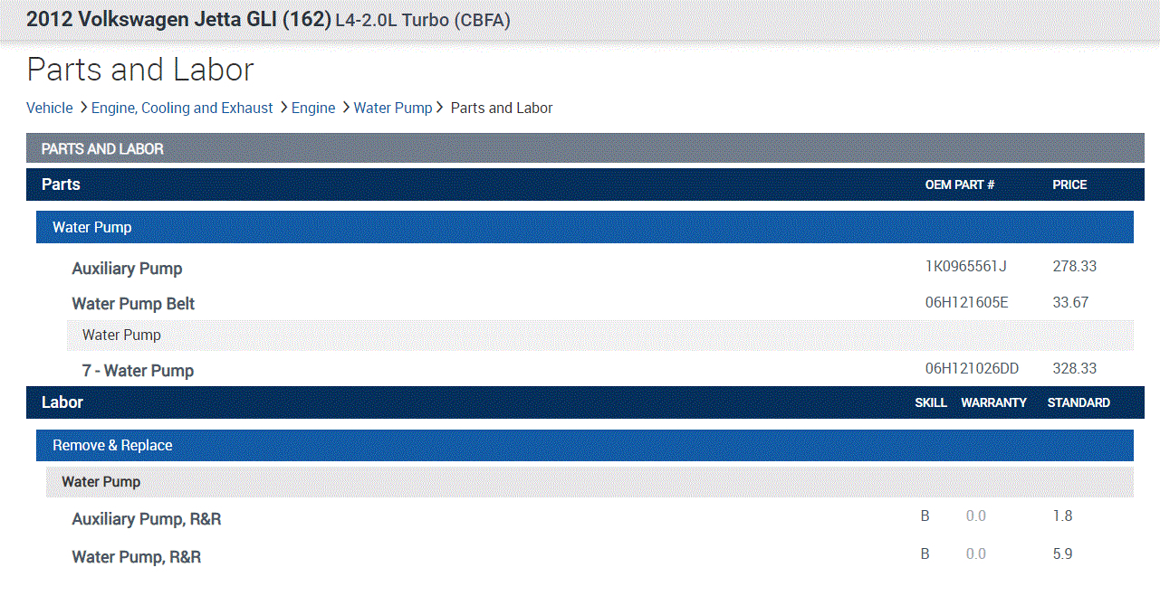 The second one is for the water pump replacement. The majority of the cost is labor.