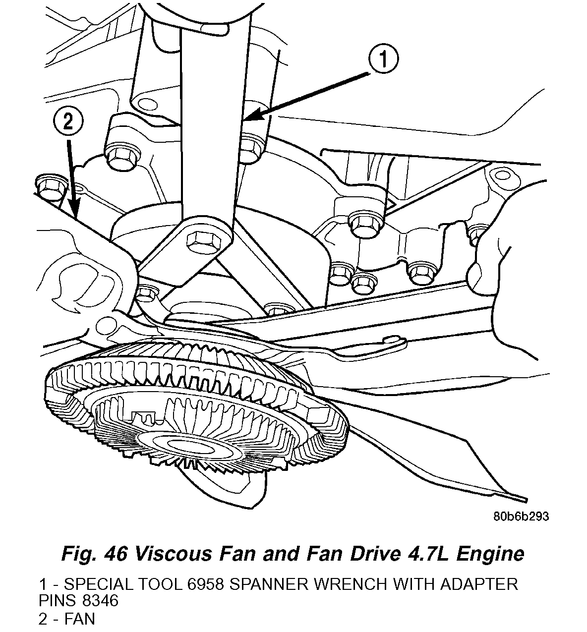4. If the water pump is being replaced, do not unbolt the fan blade assembly from the thermal viscous fan drive.