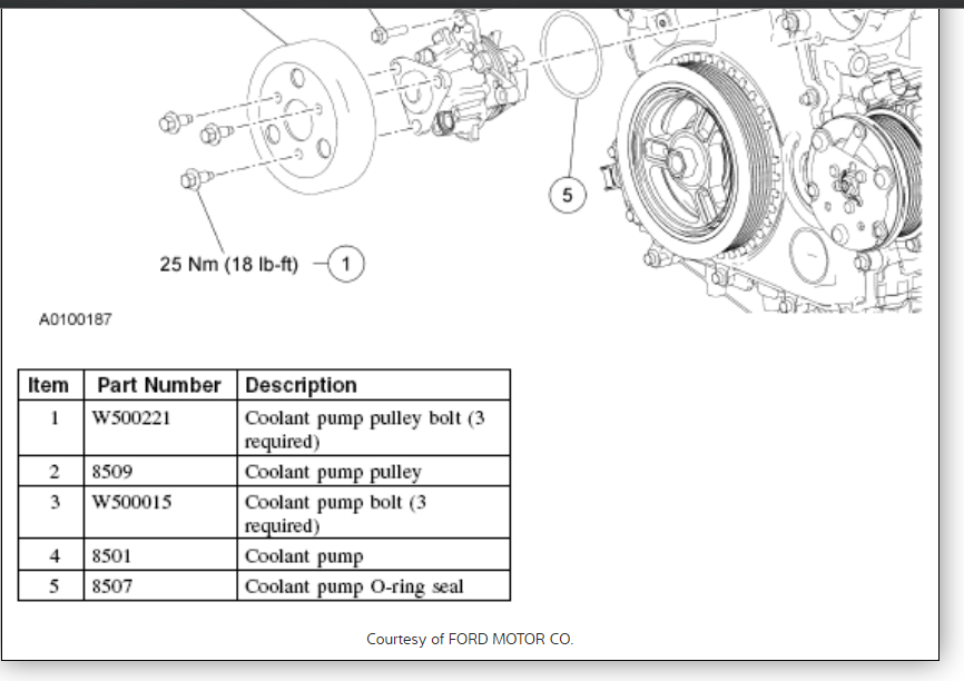 I have included for you below in the diagrams step by step instructions from the Ford Motor Company on removal and installation of not only your vehicle's water pump, but the thermostat as well, Please let us know how it turns out.