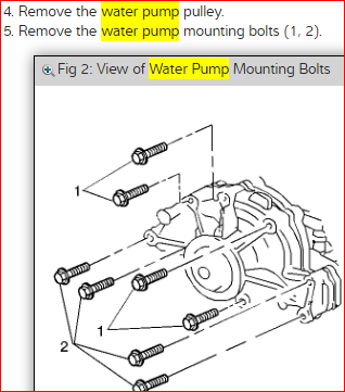 Water pumps are made with a drain hole in the bottom. Once the pump begins to show excessive wear coolant will leak through the inner seal and begin leaking through that drain hole. It is pretty common in high-mileage vehicles. I have attached step-by-step instructions for you if you choose to do the repair yourself. Be sure that after removing the old pump that all surfaces are clean to promote a good seal for the gaskets and installation of the new pump. The long bolts are to be torqued to 22 FT LBS and the short bolts to 11 FT LBS. Hope this helps! Let me know if you have an questions!