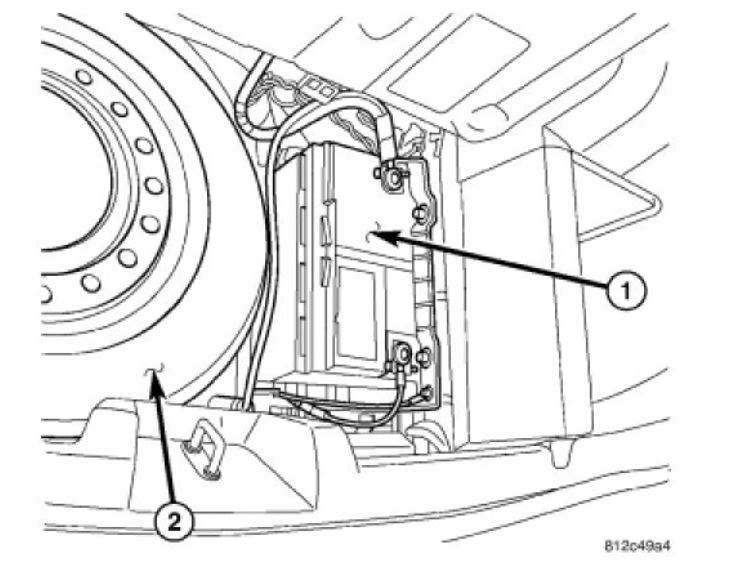 6. Remove primary timing chain tensioner retainer cap (2) and tensioner (1) from the right cylinder head.