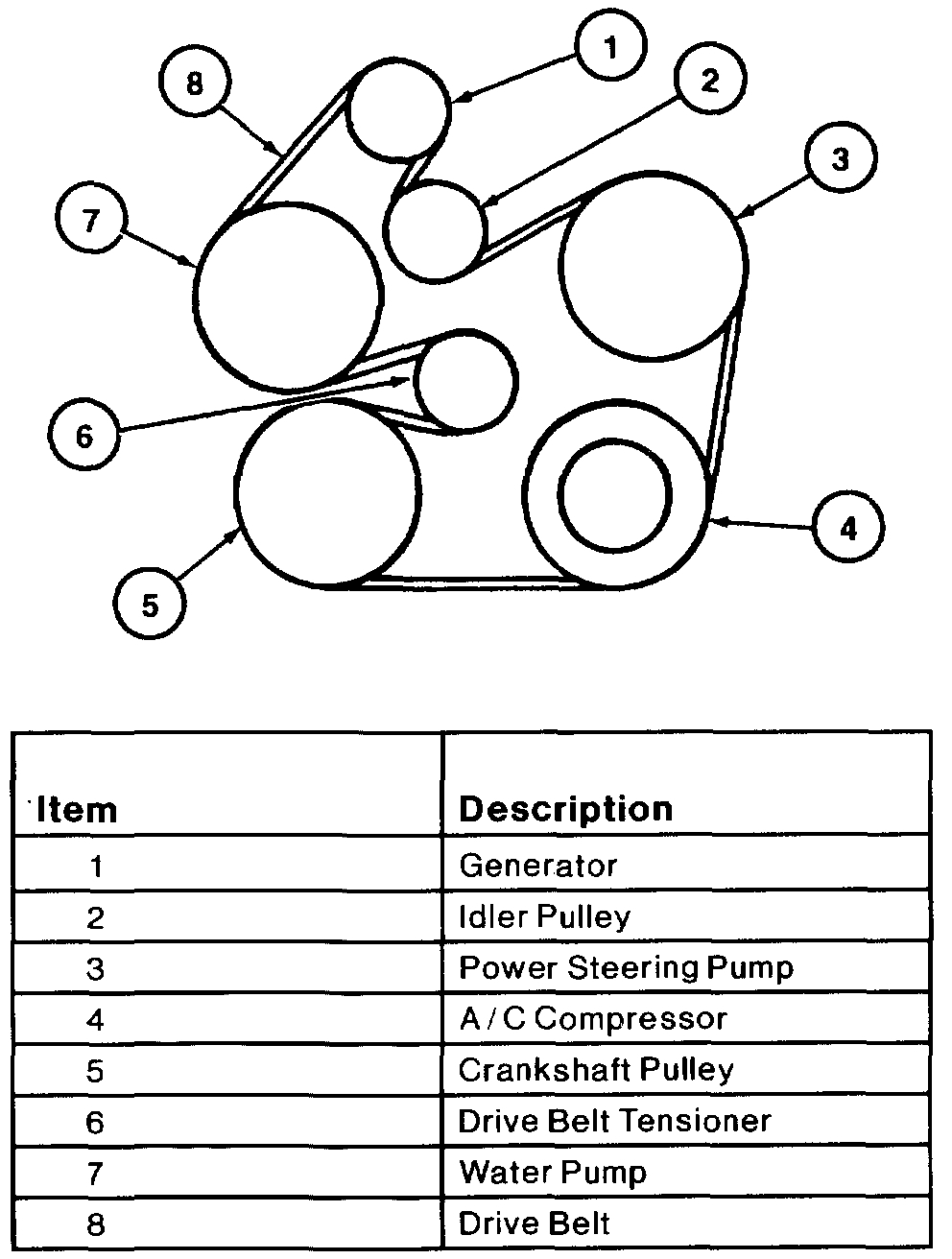 NOTE: Conditions requiring drive belt replacement are excessive wear, rib chunk-out, severe glazing, frayed cords or other conditions. Replace any drive belt exhibiting any of these conditions.