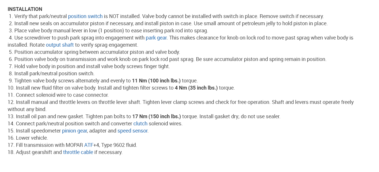 Just hoping for advice on any other things I can try before I putz around to the transmission shop for a currency enema. When I say "that plate", I mean the Valve Body.