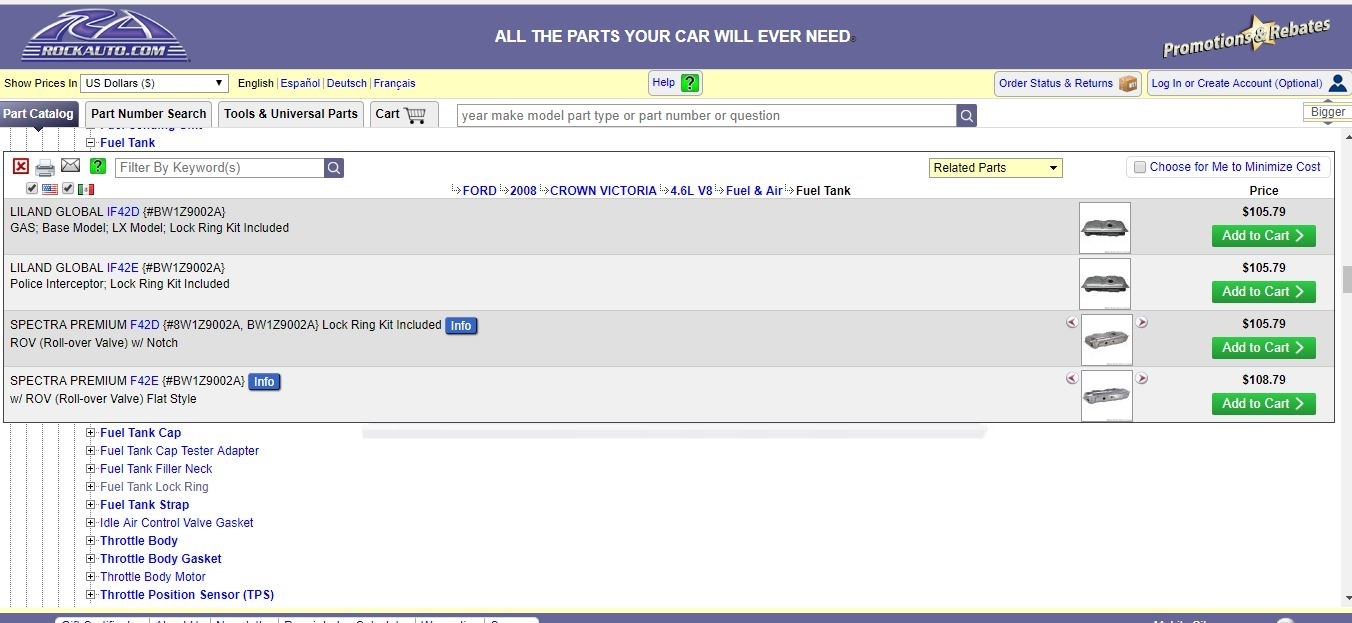 I have a 2008 Ford Crown Victoria Police Interceptor with flex fuel. Romeo. I just had my tank drop due to the tank straps breaking from rust and now the tank leaks. I am having trouble figuring out what aftermarket fuel tank will fit my model. From what I can see a spectra premium f42e will fit, but the whole roll over valve-flat style and roll over valve- push in style are confusing me. There was one that said it was notched also. While the Police Interceptor flex fuel variation says it fits my vehicle but does not specify ROV or a notch. Does my vehicle require a Police Interceptor with push in style ROV or no? I just do not want to order the wrong tank because I am swapping everything from old tank onto new tank and they must fit together. I am also getting a lock ring pump seal, straps and hardware and fuel filter. Just FYI. Please help me decide what cheaper aftermarket tank to get. Please oh please!