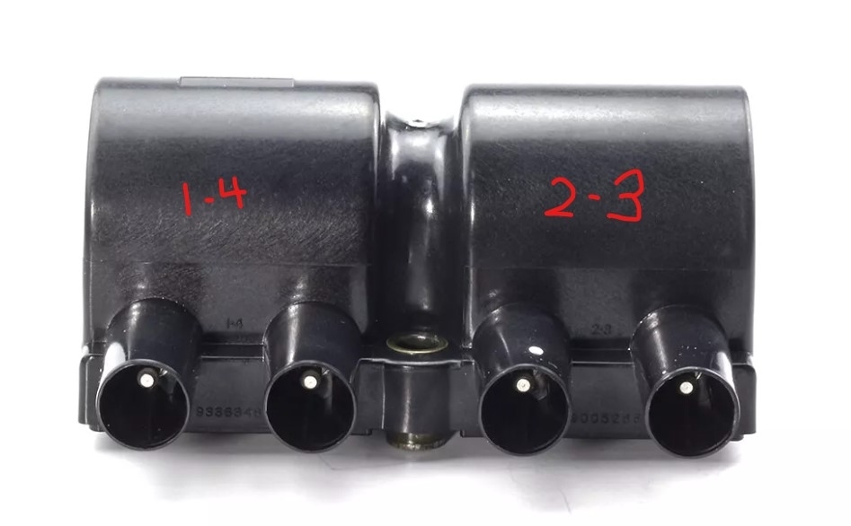 That car uses a waste spark system so one coil covers cylinders 1 and 4 the other is 2 and 3 as shown in the image. What codes do you have? With that coil pack system, you usually lose 2 cylinders when they fail because each coil fires both cylinders on it at the same time. It also doesn't matter which wire is on which terminal so as long as 1 and 4 are on their coil you could put them on in reverse and it won't matter. So, 1-4 or 4-1 doesn't matter. Same with 2-3 or 3-2. The firing order is 1-3-4-2 The wires on the other hand can be an issue.