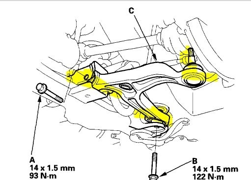 In picture 3 I highlighted the ball joint and on the other end are where the control arm bushings are. They said the control arm needs replaced. Check for play in the ball joint and you may need to get a pry bar to put pressure on the control arm to check for play in the bushings.