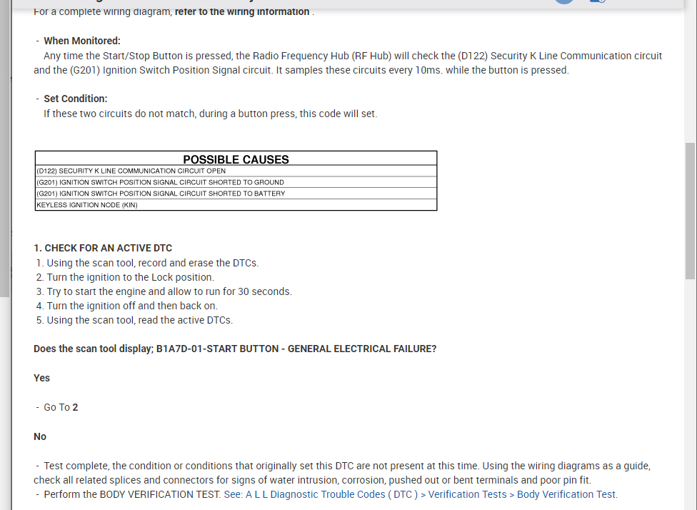 Basically this means that the security circuit on the push button start does not match the signal circuit. These circuits are duplicates of each other and when they don't match, it sets this code.