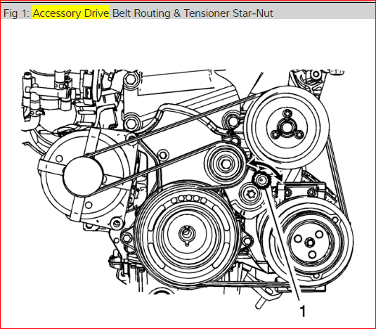 1. Rotate the tensioner star-nut (1) and remove the accessory belt.