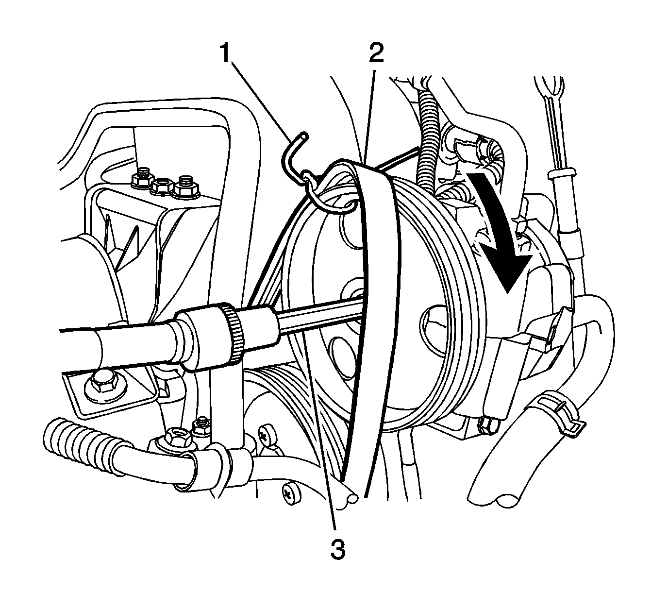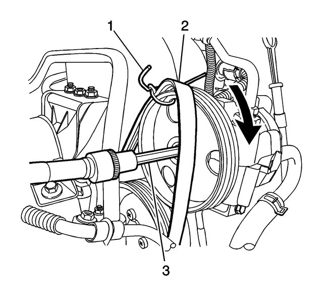 1. Remove the engine accessory drive belt. Refer to Drive Belt Replacement (See: Drive Belt > Removal and Replacement > Drive Belt Replacement).