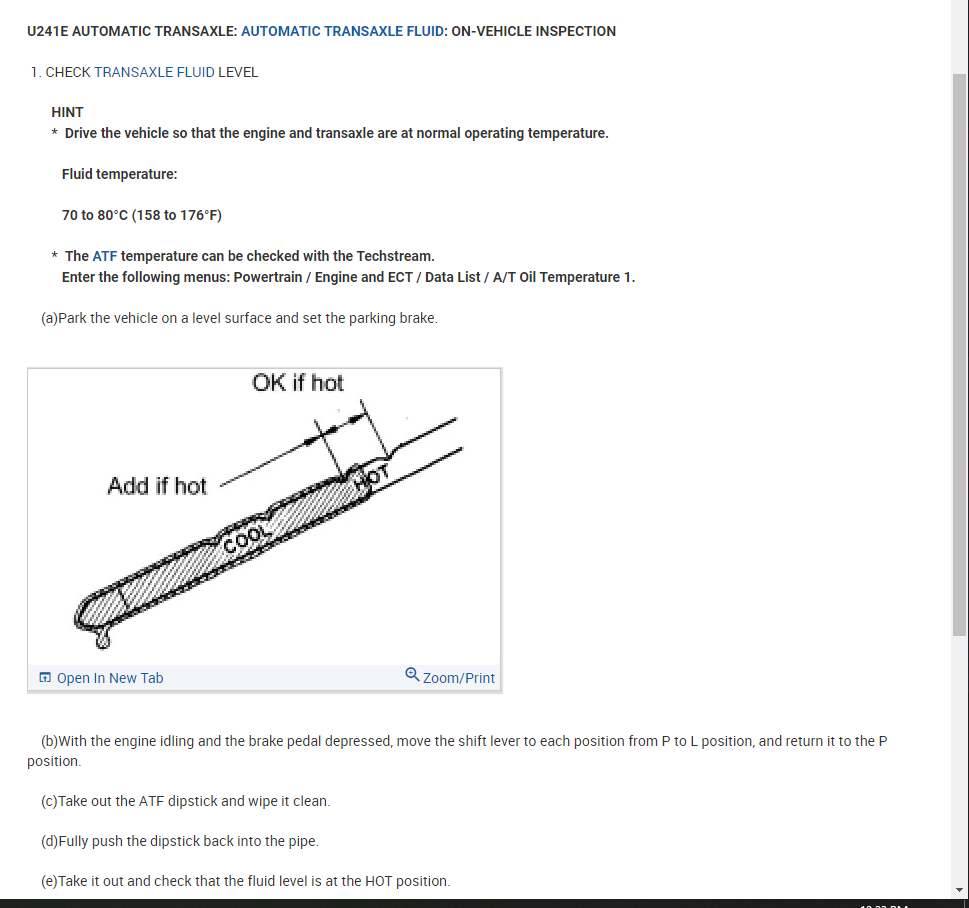 Unfortunately we don't have a manual on this vehicle as it is not offered here in the USA but we always check transmission fluid when the engine is to operating temperature.